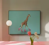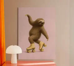 Fate una dichiarazione audace e contemporanea con questa sorprendente stampa animale Pop Art, "Roller Giraffe". Questo pezzo accattivante presenta una maestosa giraffa realistica a metà della sua corsa, mostrando un incredibile equilibrio e stile. L'opera d'arte è caratterizzata da un elevato contrasto e da un'estrosità moderna, con la giraffa che indossa con sicurezza pattini a rotelle rosa acceso e calzini sportivi a righe. Questo poster di giraffa stravagante di alta qualità è ideale per i collezionisti di fotografie di animali unici e di arte digitale contemporanea.