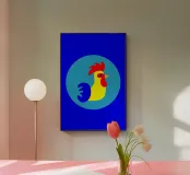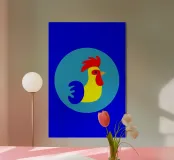 This illustration offers a modern, minimalist reinterpretation of the traditional rooster motif. Using clean geometric shapes, the design evokes the imagery of the 1960s and objects found at flea markets. The use of bright, pop colours gives your décor a strong visual identity and a distinct vintage touch.