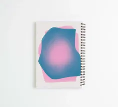 A soft gradient blends the vibrant blue and pink, forming abstract, overlapping organic shapes. The smooth transitions and ethereal glow create a calming visual.