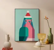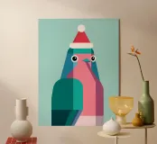 Questo pettirosso illustrato geometricamente indossa un cappello natalizio e irradia leggerezza festiva in un design moderno. Forme chiare, colori contrastanti e uno stile minimalista rendono il motivo un affascinante richiamo visivo - ideale come poster per Natale o come regalo per gli amanti del design e degli animali.