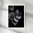 A black and white botanical poster showing a branch of eucalyptus with round, finely-veined leaves set against a deep black background. The side light reveals delicate textures and a minimalist, sophisticated and soothing composition. This wall poster brings freshness and elegance to the living room, bedroom or office, and complements contemporary, Scandinavian, japanese or bohemian chic styles.