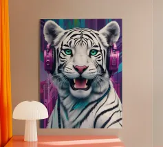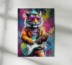 Questa tigre audace ed elegante, che sfoggia occhiali da sole riflettenti su uno sfondo a scacchiera vintage, conferisce un atteggiamento feroce e un tocco moderno a qualsiasi spazio. Un mix perfetto di energia selvaggia e disinvoltura.