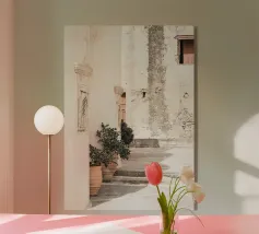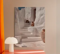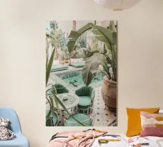 Entrate nel cuore del fascino marocchino con questa scala ad arco bianca splendidamente immortalata in un riad tradizionale bohémien. Le curve aggraziate dell'arco e i dettagli intricati dell'architettura invitano a un senso di calma e vagabondaggio, perfetto per aggiungere un tocco di eleganza marocchina a qualsiasi spazio. L'estetica pulita e minimale delle pareti imbiancate a calce contrasta con le ricche texture e le tonalità della terra del riad, creando un'atmosfera serena e senza tempo. Ideale per gli amanti della fotografia di viaggio, dell'arredamento bohémien e degli interni di ispirazione mediterranea.