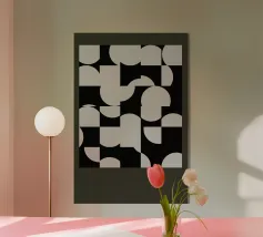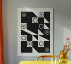 "Pattern of Emergence" è un'opera d'arte geometrica astratta che esplora come la bellezza complessa nasca da inizi semplici. L'opera presenta piccole sezioni ripetute che si combinano per formare un disegno più grande e intricato. I punti neri fungono da fulcro, evidenziando i punti di connessione e di transizione. L'opera suggerisce che i grandi disegni non appaiono e basta, ma emergono passo dopo passo, quando le parti più piccole lavorano insieme. Per questo motivo è un'opera d'arte da parete moderna molto interessante.