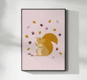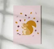 Un simpatico scoiattolo geometrico gioca tra le foglie che cadono e le ghiande, nei toni tenui del rosa e del miele. Minimalista e dall'aspetto scandinavo, questo motivo porta pace e calore nelle camere dei bambini e negli spazi abitativi autunnali. Perfetto come poster o stampa d'arte incorniciata.