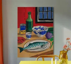 "Seaside Feast" è una natura morta giocosa e minimalista che dà vita ai sapori dell'oceano. Con un pesce fresco, ostriche e fette di limone in un ambiente semplice ma vivace, quest'opera d'arte celebra la cucina costiera in uno stile gioioso e astratto. Con le sue pennellate audaci ed espressive e la palette di colori chiari, l'opera evoca il fascino di un pasto in riva al mare, perfetto per qualsiasi cucina o zona pranzo che abbracci l'amore per il cibo e il mare. Progettato da BALIKA HOMES.