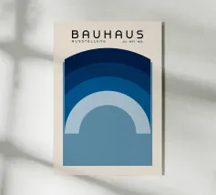 I semicerchi blu scuro sono disposti in file ordinate, aumentando gradualmente la sfocatura dall'alto verso il basso. Il disegno crea un senso di profondità e movimento, attirando l'occhio attraverso il suo schema simmetrico.