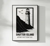 Stampa Shutter Island, Poster cinematografico alternativo, Bianco e nero, Minimalista, Faro, Reparto psichiatrico, Ospedale psichiatrico, Regalo per i fan del cinema