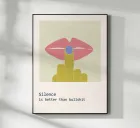 Minimalist, cheeky and to the point: this poster with the stylised lip motif and the message "Silence is better than bullshit" gets it just right. With its soft colours and clear design, it fits perfectly in any room that can do with a bit of character and humour. A real statement for your wall!