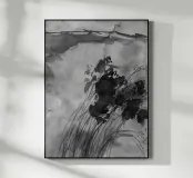 Silent Wind is an expressive black and white watercolor that captures the quiet movement of grass and shadow. The flowing ink forms evoke the rhythm of wind and the poetry of stillness. Simple yet emotional, this piece adds depth and calm to any modern or minimalist interior — a meditation on nature in motion.