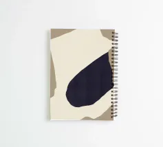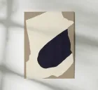 Abstract forms create a striking composition with a large, dark irregular shape nestled within a light beige area on a muted brown background. The simplicity and contrast between the colors emphasize the organic shapes and lines.