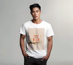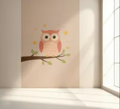 Simpatico gufo dei cartoni animati su un ramo con le stelle plexiglass