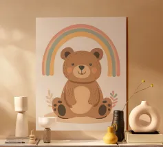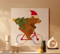 Simpatico orso in inverno con sciarpa e tazza calda plexiglass