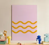 Graphic minimalist wave pattern, orange on pink