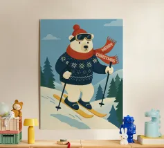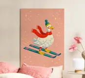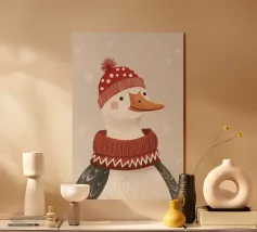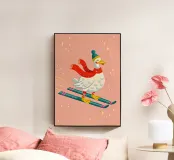 Un'allegra anatra sugli sci - avvolta in sciarpa e cappello, pronta per il divertimento invernale! Questo motivo giocoso combina un'illustrazione umoristica con colori caldi e un'atmosfera festosa. Perfetto per le camere dei bambini, per le decorazioni invernali o semplicemente per un sorriso. Il disegno irradia gioia, movimento e un pizzico di magia natalizia: l'ideale per chi ama l'umorismo e il cuore nella propria arte.
