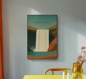 Minimalist Iceland travel design with the famous Skogafoss waterfall in a stylised style. Ideal for anyone who loves this beautiful Scandinavian country with its impressive nature.