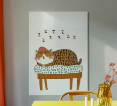 "Sleeping Cat," a charming digital illustration, features a cat sleeping soundly in an adorable pose. The artwork exudes calmness and warmth.