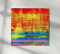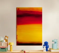 A minimalist abstract defined by horizontal strokes of intense warmth and depth. Rich yellows, reds, and deep crimson tones blend into a slow, rhythmic flow, evoking heat, energy, and emotional resonance. This artwork brings bold presence and contemporary sophistication—ideal for interiors that embrace color as a statement.