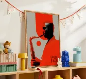 Pura freschezza con un look vintage: questo lavoro graficamente brillante cattura l'essenza del jazz liscio in un linguaggio di design minimalista. L'iconica combinazione di colori bicolore - rosso brillante su grigio tenue - ricorda le leggendarie copertine dei dischi Blue Note degli anni Sessanta. La griglia e la formazione di blocchi geometrici citano le tecniche di serigrafia di Warhol, mentre l'eleganza minimalista ricorda i manifesti cinematografici di Saul Bass. Gli elementi circolari danzano intorno al sassofono come note visive. Il retrò chic incontra la perfezione grafica. Un must per gli amanti del jazz e del design!