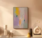 "Soft Collision" captures the poetic tension between chaos and calm in a symphony of pastel brushstrokes. The textured oil-like layers blend lavender, peach, mint, and warm yellow in a dance of light and softness. This artwork brings a soothing, modern energy to any space — perfect for interiors that seek to combine emotion with elegance. Ideal for living rooms, creative studios or contemporary nurseries, this piece radiates both minimalism and complexity.