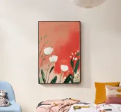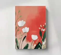 A minimalist floral composition where delicate white blooms rise against warm coral and blush tones. Gentle brushstrokes and muted greens evoke growth, quiet optimism, and the beauty of unfolding at one’s own pace. This artwork carries a sense of tenderness and renewal, making it a calm, uplifting presence for modern, Scandinavian, or softly styled interiors.