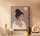 "Softly She Dreams" is a work of art that inspires peace and contemplation through its soft tones and clean lines. Reflecting the golden light of a peaceful day, this design brings a boho touch to any room. The gentle lines and soothing colors invite relaxation, while the simplicity of the piece allows it to adapt to a wide variety of interiors, whether a modern living room or a creative office. This design creates a warm and welcoming atmosphere, ideal for those looking to transform their space into a serene retreat.