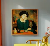 Il sole della sera entrava dalla finestra, caldo e dorato, e il mondo fuori era silenzioso. Lola sedeva sognante sulla sedia e guardava nel vuoto. Accanto a lei faceva le fusa Milo, il suo vecchio gatto nero. All'improvviso Milo sollevò la testa e guardò Lina, con quegli occhi che sembravano sapere più di quanto le parole potessero dire. Poi saltò delicatamente giù dalla panchina, si guardò intorno e trotterellò lentamente verso la porta. Disegno digitale nello stile dell'impressionismo francese e dell'esplorazione di luci e ombre.