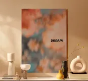 Create a calm and inspiring atmosphere with this minimalist “Dream.” poster. Featuring a soft abstract blur in warm beige, peach and muted blue tones, this modern wall art brings a subtle and elegant touch to any living room, bedroom or home office. The clean typography combined with the dreamy color palette makes it perfect for Scandinavian, contemporary and minimalist interiors. Ideal for adding a peaceful yet motivational statement to your home decor.