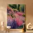 Un prato è pieno di alte guglie di fiori di lupino rosa e viola, le cui forme morbide e verticali creano un paesaggio romantico e sognante che sembra rigoglioso e pieno di vita.