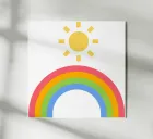 rare and magical moment where sunlight meets spectrum—rays stretching through mist or clouds to reveal soft arcs of color. The sun glows warmly, surrounded by iridescence, evoking hope, harmony, and the wonder of nature’s quiet brilliance.