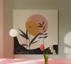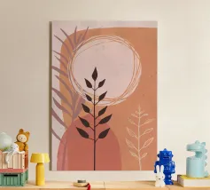 Questa splendida e moderna stampa da parete presenta un disegno botanico minimalista con un sorprendente contrasto di sagome nere su uno sfondo caldo e neutro. Il centro è costituito da un grande sole dorato, che aggiunge un tocco di eleganza e calore, mentre una morbida forma astratta color pesca completa la composizione. Questo pezzo è perfetto per creare un'atmosfera serena e sofisticata in qualsiasi spazio, dal soggiorno alla camera da letto o all'ufficio. È un'ottima scelta per chi apprezza l'estetica boho, scandinava o moderna di metà secolo. Stampata su carta opaca di alta qualità, quest'opera d'arte è disponibile in