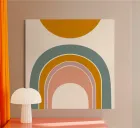 The stylised design of the sun and rainbow creates a harmonious connection between nature and abstract art. The clear lines and balanced composition lend the motif a modern elegance that comes into its own in various living spaces.