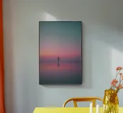 Una figura solitaria emerge al centro di un gradiente sereno che va dal verde menta al rosa arrossato. Il silenzio ambientale della composizione, unito ai suoi morbidi strati atmosferici, crea uno spazio visivo per la contemplazione. L'opera incarna forza e vulnerabilità, sospesa in un momento senza tempo tra ombra e colore. Minimalista e introspettiva, invita lo spettatore a soffermarsi nella quiete dell'essere.