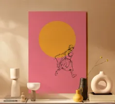 Questo pezzo esplora l'identità e l'individualità con un tocco di umorismo, mescolando colori pop-art con un tratto espressivo.