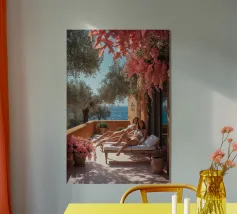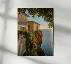 Fuggite nella splendida bellezza della Costiera Amalfitana con questa fotografia mozzafiato di un balcone soleggiato a Sorrento, in Italia. Affacciata sulle scintillanti acque turchesi, la vista cattura l'essenza del paradiso mediterraneo. Immersa nella luce dorata del sole, l'immagine invita a rilassarsi e a godersi la tranquillità della scena, con i suoi incantevoli balconi a terrazza e la vegetazione lussureggiante. Perfetta per chi sogna una fuga in costiera, questa immagine porta la bellezza calda e disinvolta delle giornate estive di Sorrento direttamente a casa vostra.
