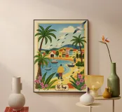 Un poster di viaggio che raffigura St. Ives in Cornovaglia