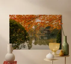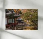Stagno del giardino segreto di Huwon a Seul, Corea del Sud plexiglass