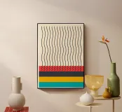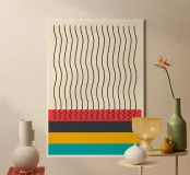 Questo vibrante poster astratto cattura l'essenza del Mid-Century Modern e del design grafico contemporaneo. La sezione superiore presenta una serie di delicate linee nere ondulate disegnate a mano su uno sfondo bianco sporco, creando un senso di movimento e consistenza. In basso, la composizione è ancorata da blocchi di colore di un rosso intenso con un bordo inferiore frastagliato, grigio antracite, giallo senape e un brillante blu verde acqua. Questo pezzo giocoso ma sofisticato è perfetto per aggiungere un tocco di colore e di fascino retrò a qualsiasi spazio abitativo. Consegnato come file digitale di qualità superiore a 7000x5000 pixel, 300 dpi, per un'ottima qualità di stampa.