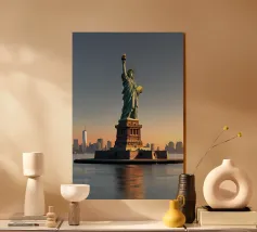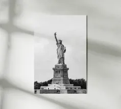 Questa affascinante fotografia in bianco e nero mostra l'iconica Statua della Libertà contro l'imponente skyline di Manhattan, simbolo di libertà e democrazia. Con un design elegante, l'opera d'arte combina l'estetica moderna con la bellezza senza tempo di questo famoso simbolo e aggiunge un tocco di raffinatezza a qualsiasi ambiente.