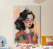 Una rappresentazione rilassata di una persona con una camicia a quadri, su uno sfondo creativamente astratto. La scena riflette un'essenza casual ma artistica.