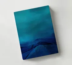 Watercolor abstract of a storm brewing on the sea with heaving and rolling waves. Deep blues, navy and aqua.