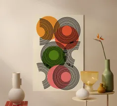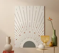 Questo straordinario disegno mostra un sole stilizzato con raggi dinamici dalle linee sottili, completato da punti colorati in verde, marrone e nero. L'estetica minimalista e la palette di colori tenui rendono questo motivo ideale per murales, cuscini, tazze e altri accessori per la casa. Conferisce un'atmosfera moderna e rilassante a qualsiasi ambiente ed è perfetto per gli amanti dello stile boho e scandinavo e per chiunque apprezzi l'arte e il design.