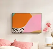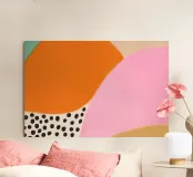 In einem bunten Farbenmix aus hellblau, pink und orange strahlt das trendige Sommer-Poster mit kreativen Mustern und coolen Prints, die sofort gute Laune verbreiten. Die pinke-orange abstrakte Kunst verleiht dem Boho-Chic-Design eine fröhliche Note und lädt dazu ein, den Sommer in vollen Zügen zu genießen!
