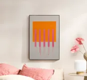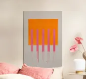 L'arancione brillante incontra il rosa sfumato: quest'opera astratta combina chiarezza geometrica e sfocatura controllata. Cinque strisce verticali sembrano fuoriuscire dal blocco arancione, come il calore, l'energia o l'emozione. L'opera appare controllata e impulsiva allo stesso tempo, ideale per ambienti moderni caratterizzati da forza, dinamismo e colore.