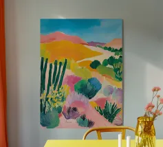 "Sunset Jungle Path" è un vibrante paesaggio astratto che cattura il calore e l'energia di una giungla tropicale al tramonto. Pennellate audaci ed espressive di verdi, rosa e gialli conducono l'osservatore lungo un sentiero tortuoso, mentre il sole al tramonto - un globo rosso incandescente - aggiunge un tocco di misticismo alla scena. L'uso giocoso di colori e forme evoca un senso di avventura e tranquillità, rendendo quest'opera d'arte perfetta per aggiungere un'atmosfera vivace ed esotica a qualsiasi spazio. Progettato da BALIKA HOMES.