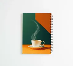 coffee cup steaming coffee saucer two-tone walls orange wall green wall geometric shapes interior setting beverage drink coffee ceramic cup minimalist decor steam table surface contrast design cups and saucers morning refreshment warm colors simple composition