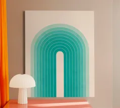Un'elegante stampa astratta di ispirazione rétro con strisce blu sfumate e forme geometriche. Le linee pulite e le morbide transizioni di colore creano un'estetica nostalgica ma moderna, perfetta per aggiungere profondità e carattere a qualsiasi spazio contemporaneo. Ideale per gli amanti del retrò e per gli interni minimalisti con un'atmosfera fresca e vintage. arte a strisce blu, stampa geometrica retrò, opera d'arte a linee sfumate, poster astratto moderno, design d'ispirazione vintage, arte da parete dai toni freddi, arredamento retrò minimalista, motivo blu degradato, arte astratta lineare, stampa da parete contemporanea, opera d'arte dall'estetica retrò, design geometrico moderno, design morbido e moderno.
