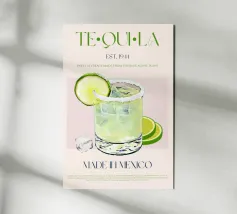 Set on a neutral, cream background, this elegant illustration of the famous Mexican drink tequila adds sophistication to any kitchen, cafe or dining area. This minimalist yet informative design will spark conversation in any setting, adding a refined touch to your environment.