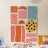 An abstract collage of various organic shapes with different patterns and textures, including dots, stripes, and solid colors. The warm, earthy palette creates a sophisticated and tactile composition.