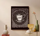 This striking black and white art print features a hand-carved linocut-style illustration of a coffee cup, radiating warmth and rustic charm. The word "coffee" sits prominently on the cup, surrounded by swirling, textured lines that evoke the comfort and ritual of a freshly brewed cup. With its bold contrast and tactile design, this artwork blends vintage printmaking techniques with modern minimalism—ideal for kitchens, cafés, and coffee lovers’ corners alike. A perfect gift for baristas, coffee enthusiasts, and lovers of handmade style.